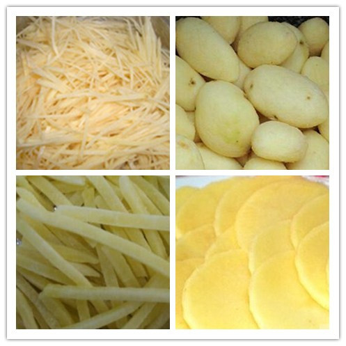 1. The machine is multi-function with cleaning, peeling and cutting. It can cut potato into both slice and strip shape for French fries and potato chips.